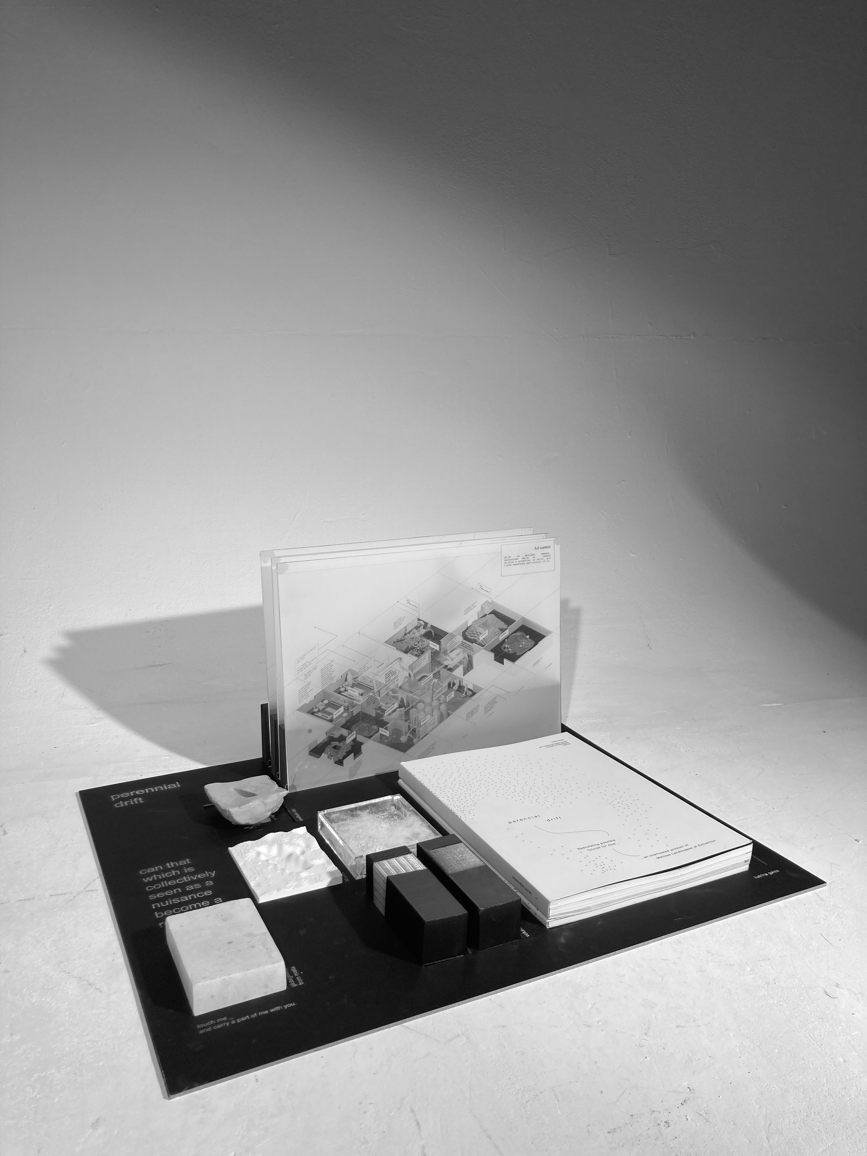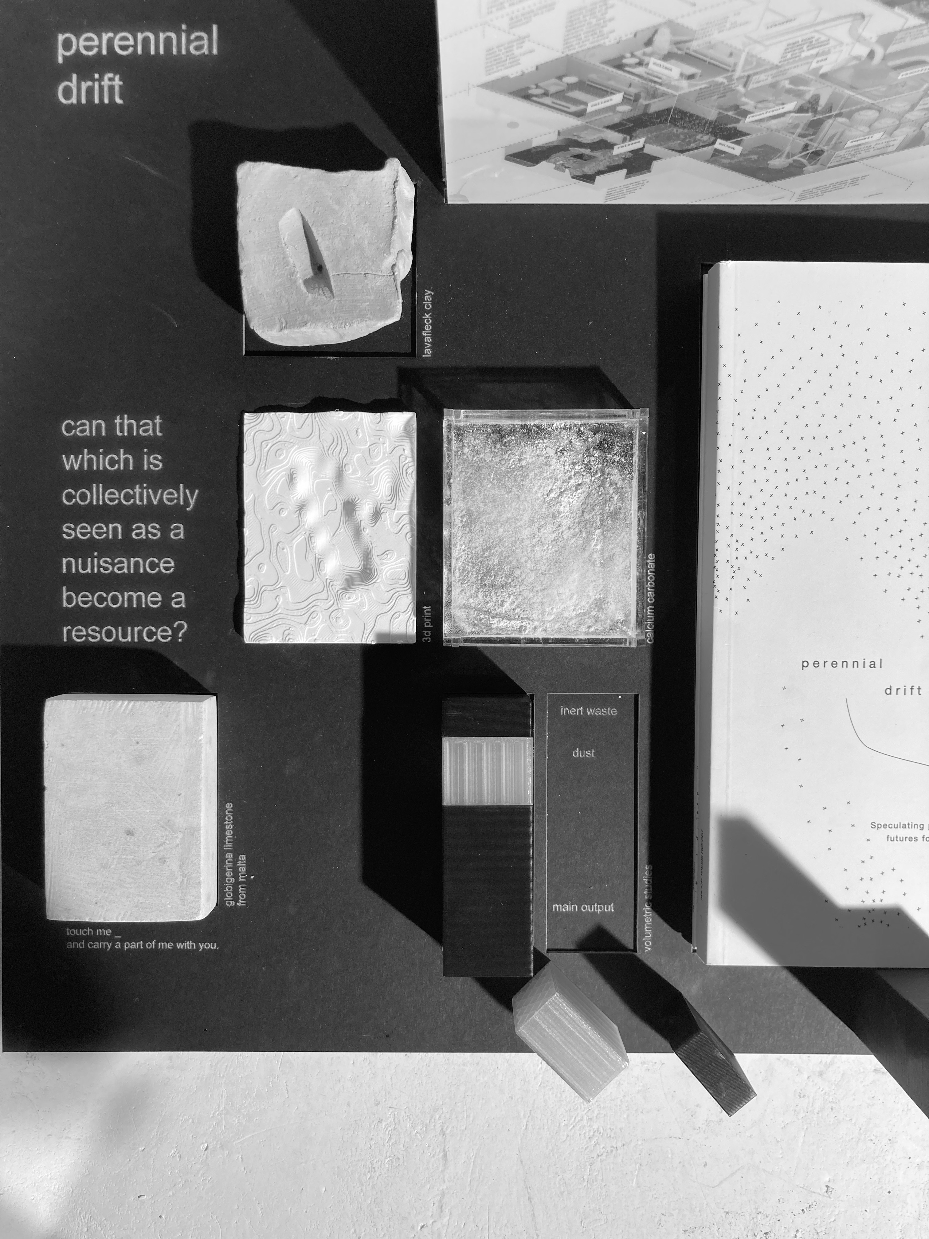 Printed work for perennial drift, including exhibition stand for MORE2022 Postgraduate Show.